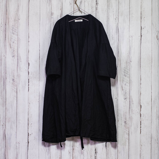 ・中肉厚地のリネンを使って羽織ものワンピースにしました。