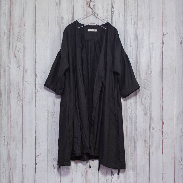 ・中肉厚地のリネンを使って羽織ものワンピースにしました。