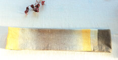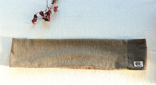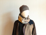 草木染めの綿の黄色とグレーのカラーのを組み合わせた2重に巻くタイプの幅細のスヌードです。