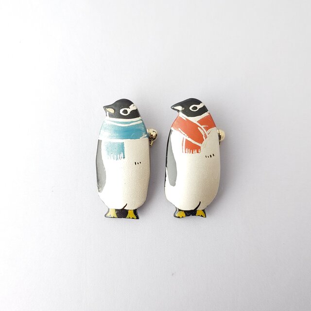 マフラージェンツーペンギン 漆ブローチ