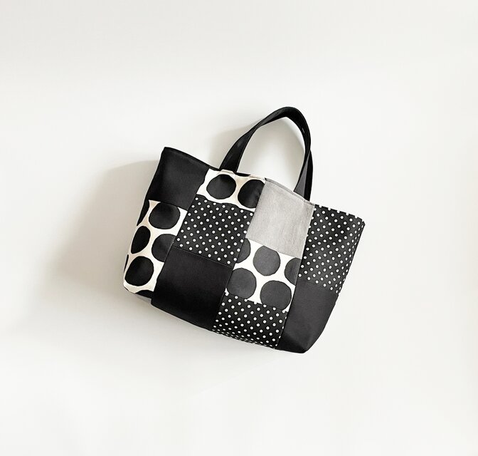 一点物|モノトーンドット パッチワークトートバッグ|A4対応・マチ付き