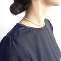 パールのネックレスや控えめなアクセサリーを合わせることで