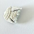 やさしいやさしいアイボリー色の鳥 羊の手紡ぎ糸を使った刺繍ブローチ