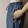 ウエストは開きなしのゴム入りで、紐(共布)での調節も可能な仕様です。