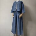 ・ブルーシャンブレー シャツジャケット 配色ステッチ