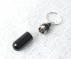 【漆黒・神秘的なブラック の海へ】 純チタン製・遺骨入れキーホルダー(内部に硬質ガラス容器付)一生もの ◎日本製
