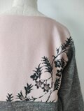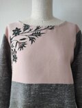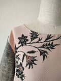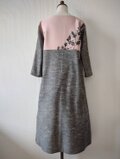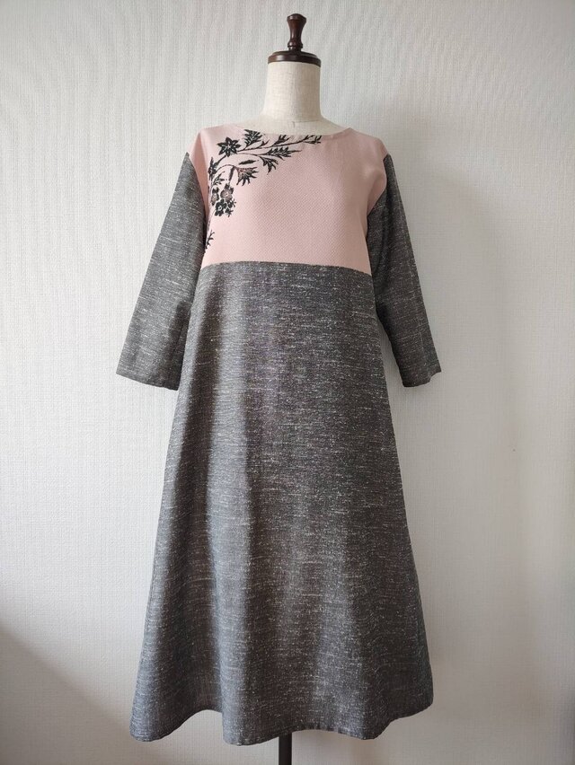 紬織りのように見えるグレーの生地は服地を合わせたので生地巾がありスカートや袖も一枚の布で裁断でき見た目も綺麗です。