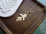 ペンダントネックレス: トップ部分:マットゴールド色の木の葉22mm x 40mm、ネックレス:50cm+アジャスター3cm