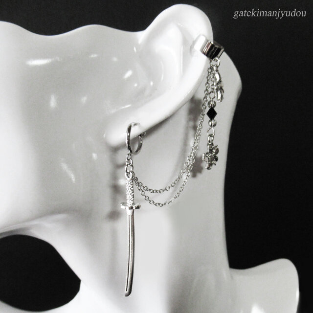 【サイズ】イヤーカフ : 幅約0.5mm / チェーン(長い方) : 約8cm / 刀 : 4.8×0.8cm