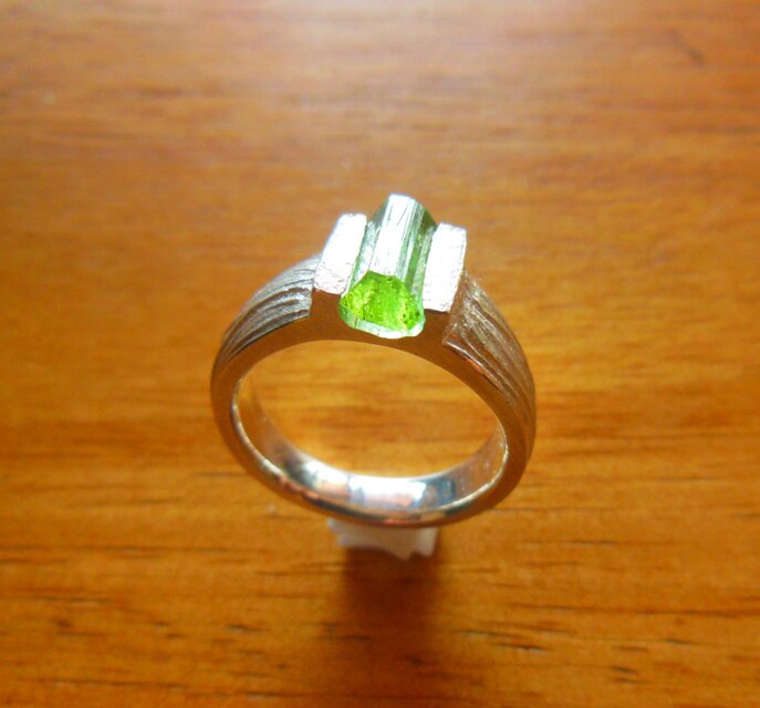 グリーントルマリンの原石をセッティングしたリングです。