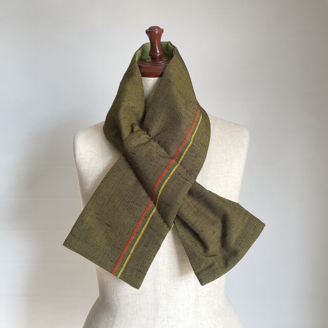 【1点もの】着物 襟巻き ネックウォーマー -シルクウール着物地 黄土色 & 新毛斯 新松葉(ヴィンテージ) NW696