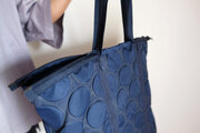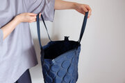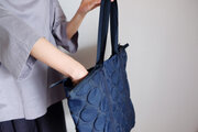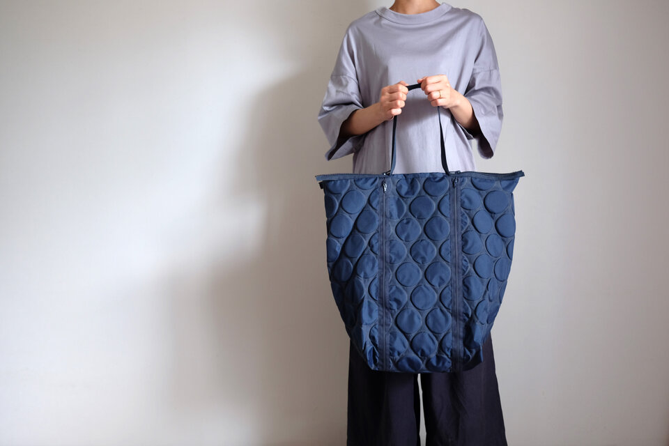 新作・軽量/凹凸水玉模様がかわいい/ナイロン/肩掛けマチ付き/A4対応大容量【ZIPポケットZIPトートバッグ/ネイビー