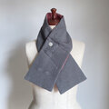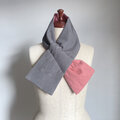 【1点もの】着物 襟巻き ネックウォーマー -絹着物地 青灰 格子に鳥 & 新毛斯 セピアローズ(ヴィンテージ) NW726