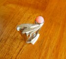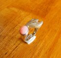 ピンクオパールのリングです。独特のオリジナルデザインには鏨による手彫りのテクスチャーを入れてあります。