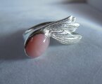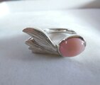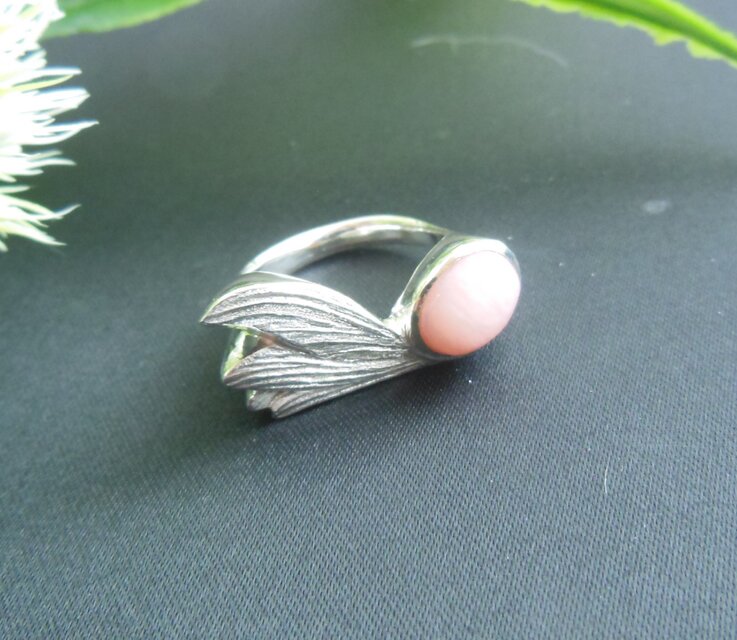 ピンクオパールのリングです。植物のような昆虫のような、独特のオリジナルフォルムには鏨による手彫りのテクスチャーを入れてあります。