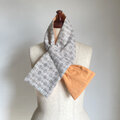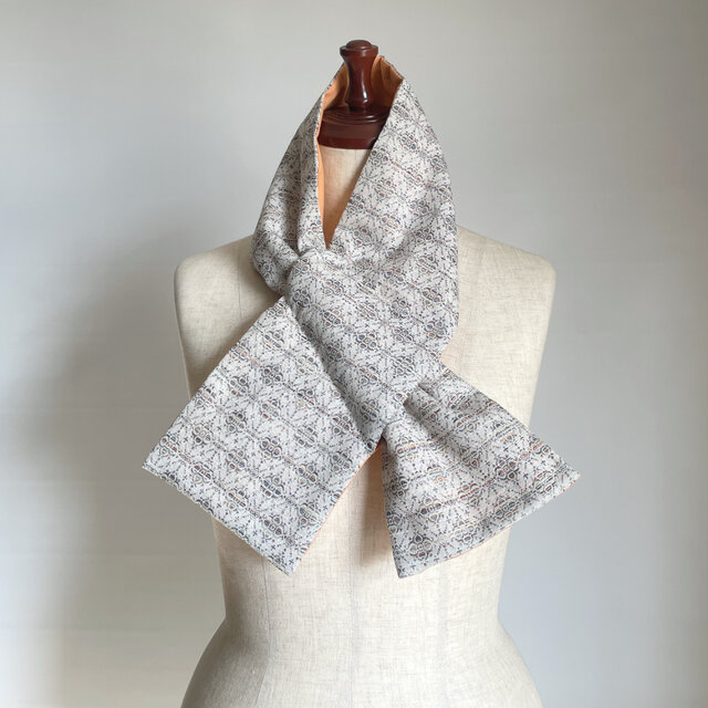【1点もの】着物 襟巻き ネックウォーマー -ウール着物 唐草格子文 & 新毛斯 薄オレンジ(ヴィンテージ) NW727