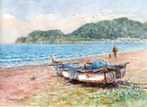 水彩画原画 鎌倉・由比ガ浜海岸風景 #717