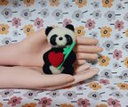 丁寧に作られたこのパンダは、赤いハートと緑の笹を抱きしめており、見ているだけで心が和むような表情をしています。