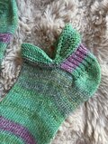 久しぶりに購入しました。 手編みの靴下は、柔らかくて肌触りが気持ち良いです。洗濯しても縮まないので、扱いも楽です。この形は初めてですが、これからの季節に活躍してくれるでしょう。有難うございました。
