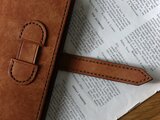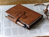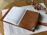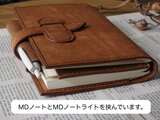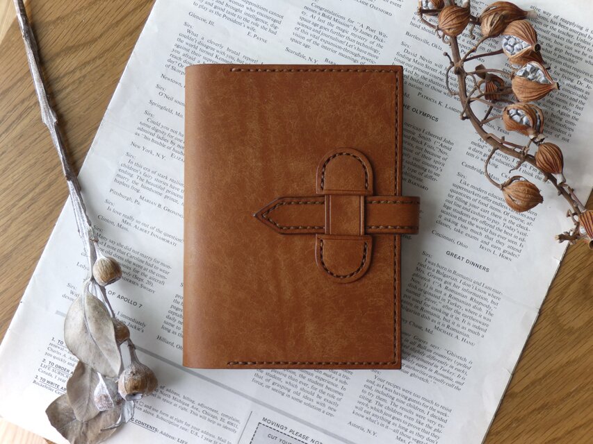 ・ノートの厚さは1.0㎝〜1.5㎝を基準にお作りしております。ベルトが長めなので、多少厚くなってもしっかり閉じることが出来ます。写真に写っているノートは、ほぼ日手帳です。