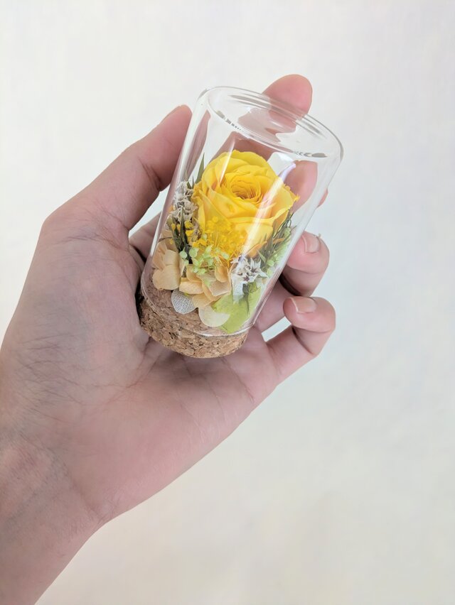 プリザーブドフラワー/黄色の薔薇と小花のミニガラスボトルギフト(幸せギフト♡)