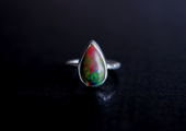 天然のオーストラリア産ブラックオパールを使ったシルバーリング。