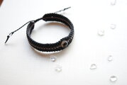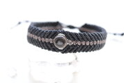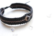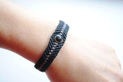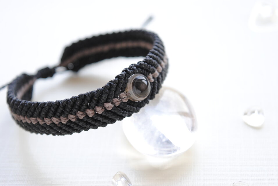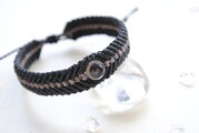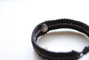 蝋引き紐はブラックメインにダブグレイ(紫がかった灰色)の糸でラインを編んでいます。