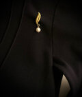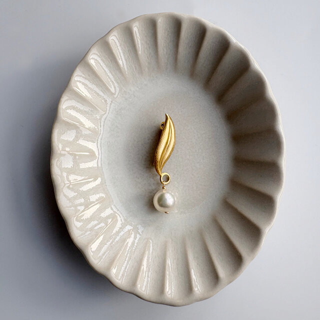 リーフをモチーフにした、シンプルで上品なあこやパールブローチ。