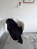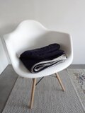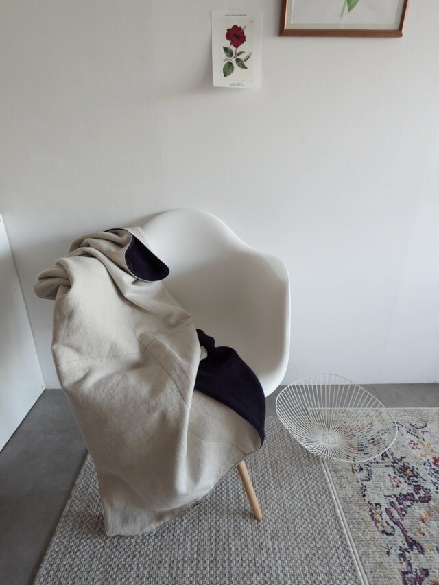 淡グレーのリネンウール×ネイビーのウールのシンプルなリバーシブルブランケット
