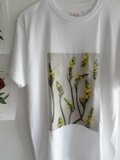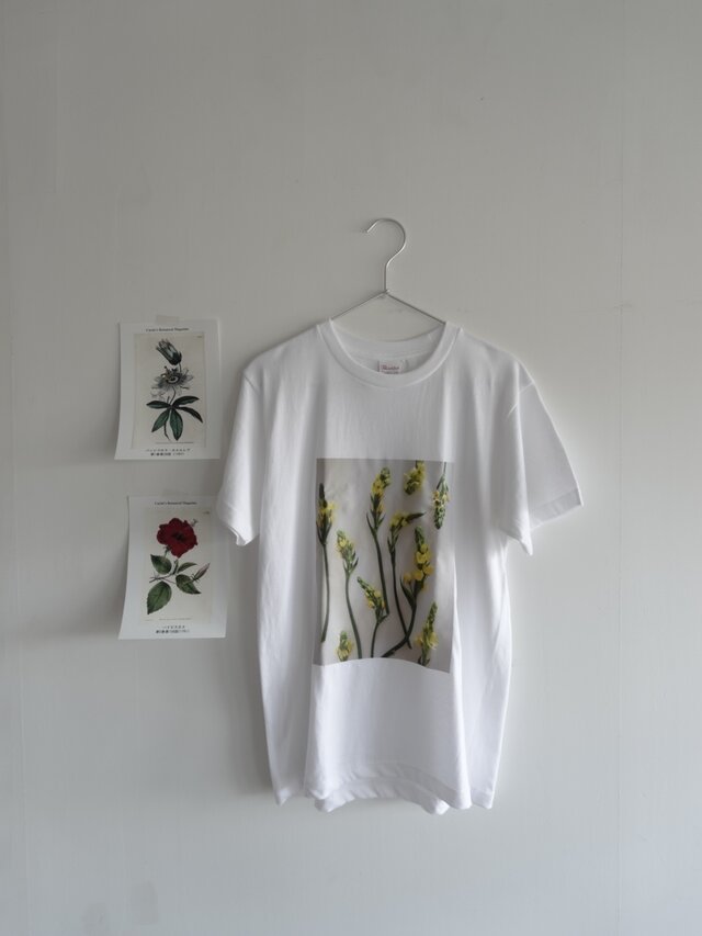 花の写真をプリントした、シンプルなTシャツ。写真はすべて、私自身が撮影したものを使用しています。