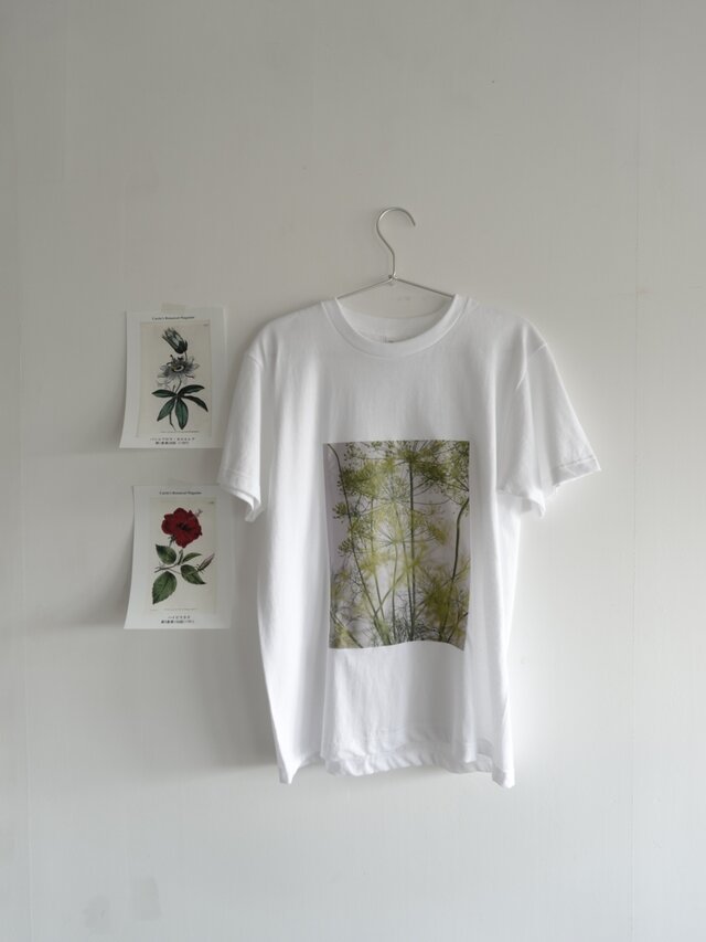 花の写真をプリントした、シンプルなTシャツ。写真はすべて、私自身が撮影したものを使用しています。