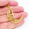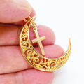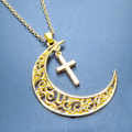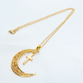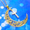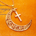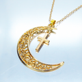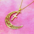 マットゴールド 透かし三日月とロザリオ(十字架)の大人可愛いネックレス ムーンネックレス