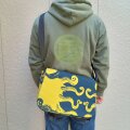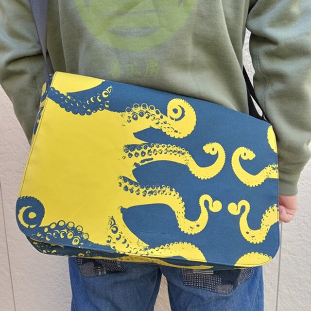 デザイナーズファブリックメッセンジャーバッグ(騙し絵蛸図)黄×紺