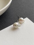 あえてペアとして揃えず、趣のあるルース同士をペアとしており、真珠そのものをアートのように楽しむ一粒スタッドタイプのピアスです。