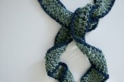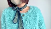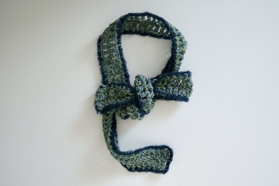 毛糸、ふわふわ、グリーン、植物、ハーブ、爽やか、ネイビー、ブルー、かわいい、スカーフ、首、プレゼント、ニット、タイ、リボン、パイピング、バイカラー、個性的、ロマンティック