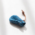 Mini pochette à cordon en cuir de bovin teint à l'indigo japonais