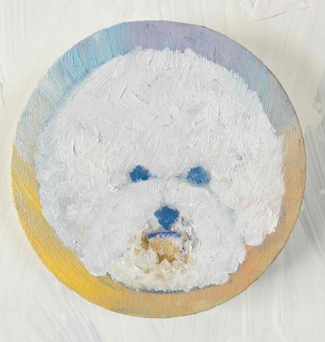 #インテリアアート #壁掛け絵画 #ギフト #絵画アート #油彩画 #丸形アート #ビジョン・フリーゼ #犬