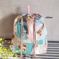 水色のコラージュ柄にピンクのドットの切替のセットです。