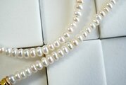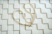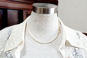 シンプルにパールをつなげていっただけのネックレスですが、艶やかで美しいボタン型のパールをソフトタイプのワイヤーに通して作っておりますので、パールどうしがくっついて密度の濃い、細い縄のような形状に見えます。