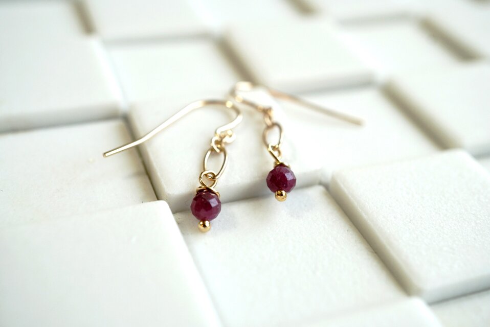 小さなルビーとピアスフックの間には、きゃしゃなチェーンを挟んでいます。