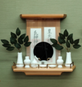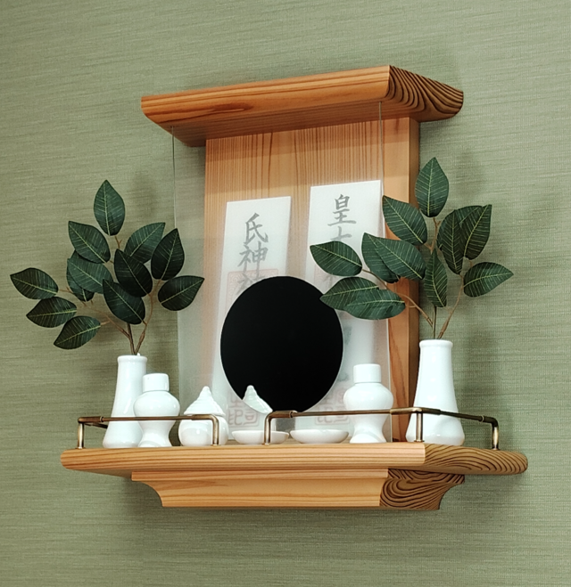付属品:神具一式(榊は別途)、神鏡(3mmガラス)、こぼれ止め金具一式、取付用金具(ボード釘付属、ビス付属)