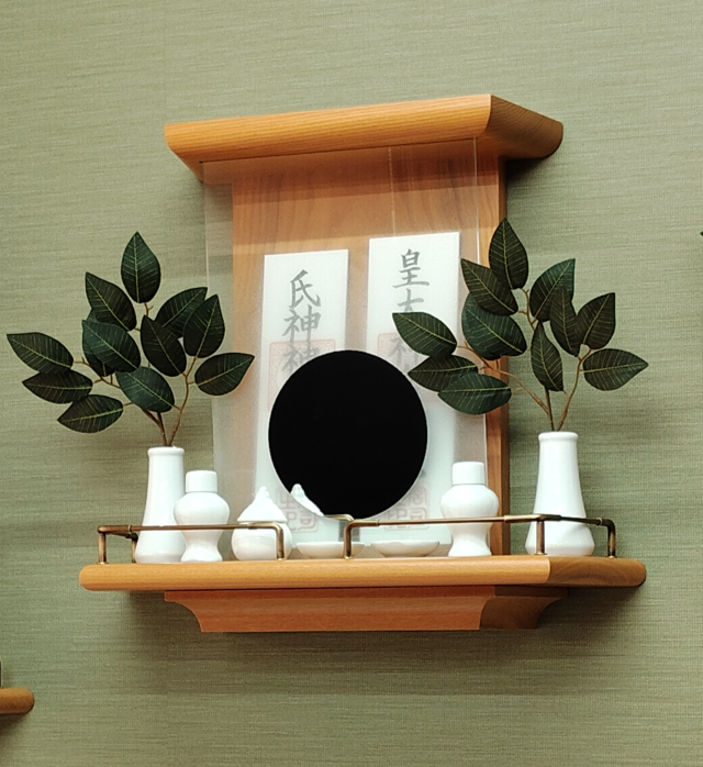 付属品:神具一式(榊は別途)、神鏡(3mmガラス)、こぼれ止め金具一式、取付用金具(ボード釘付属、ビス付属)