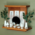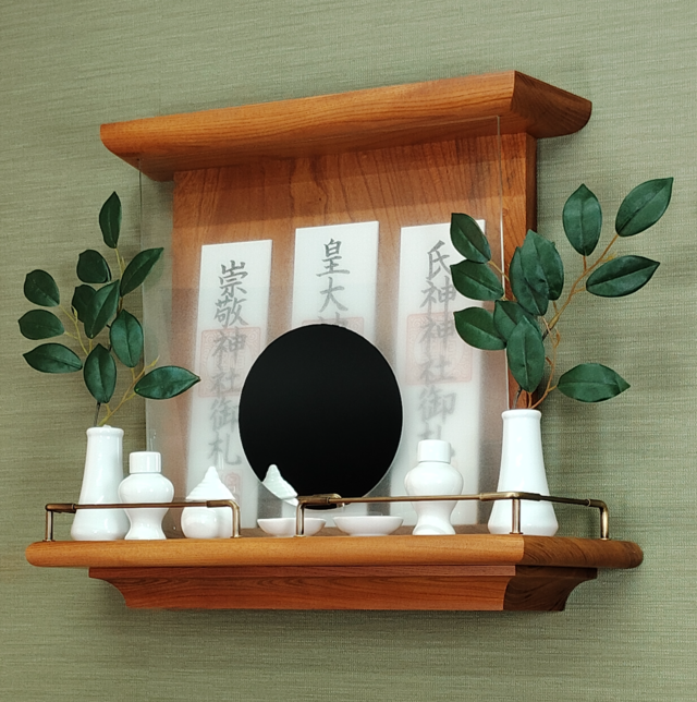 付属品:神具一式(榊は別途)、神鏡(3mmガラス)、こぼれ止め金具一式、取付用金具(ボード釘付属、ビス付属)