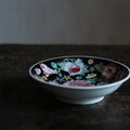 シノワズリな雰囲気◆中国景徳鎮 花文色絵小皿 中華料理 チャイナレトロ エレガント BK 黒 i2
