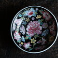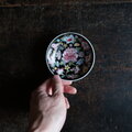 シノワズリな雰囲気◆中国景徳鎮 花文色絵小皿 中華料理 チャイナレトロ エレガント BK 黒 i1