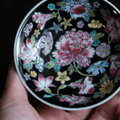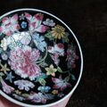 黒地にクッキリとした絵付けとカラフルな草花でとてもエレガントです。