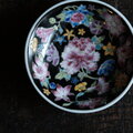 シノワズリな雰囲気◆中国景徳鎮 花文色絵小皿 中華料理 チャイナレトロ エレガント BK 黒 i3
