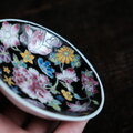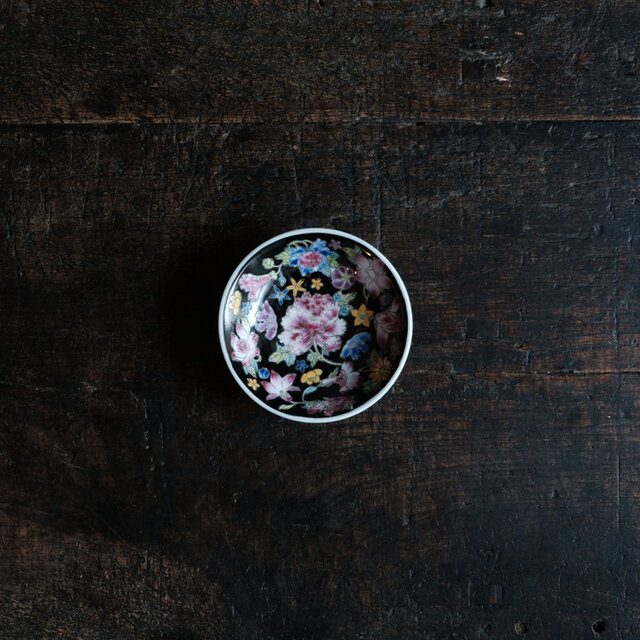 黒地にクッキリとした絵付けとカラフルな草花でとてもエレガントです。