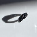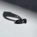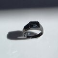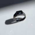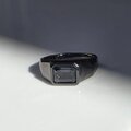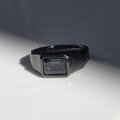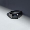 ブラックのリングの中、石が光を反射する時にキラッと輝く深いブルー