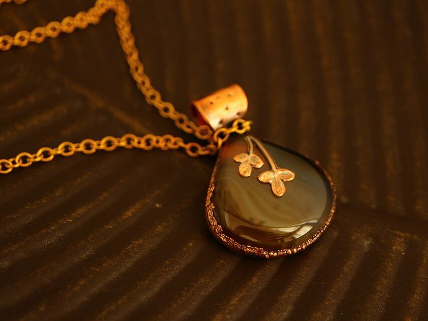 素材:モンタナアゲート、銅、ヴィンテージ真鍮チェーン